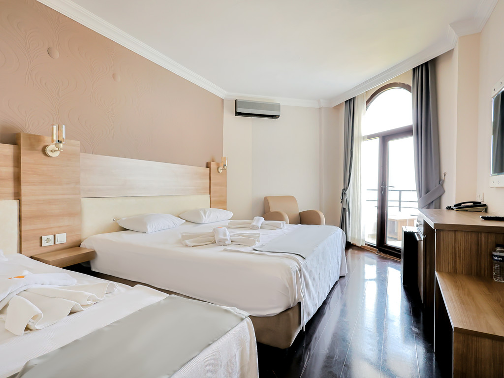 Deniz manzaralı odalarımız, konforunuz ve rahatınız için özenle tasarlanmıştır. Modern mobilyalar, konforlu yataklar ve ferah alanlarla donatılmış olan odalarımızda, kendinizi evinizde hissedecek ve tatilinizin keyfini çıkaracaksınız. Ayrıca, odalarımızın balkonlarında oturup, Ege'nin eşsiz manzarasının tadını çıkarabilir ve gün doğumunun büyüleyici görüntüsüne şahitlik edebilirsiniz.
